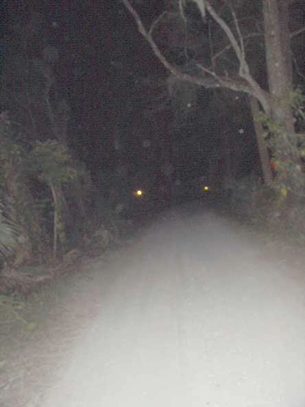 2004 Halloween at Cassadaga, FL: I took this photo into the dark woods along the roadway during Halloween 2004. I felt these spirits were staying away from people who visited that night.