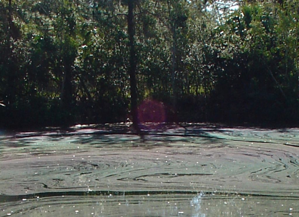 12.30.2008: Beautiful purple-red color orb at pond in Walsingham Park, Largo, FL. When I was looking at the pond, I did not know what caused that beautiful purple-red color on the algae on the water. It was the reflection of the orb that I could not see with my naked eye, but knew there was something there. The digital camera documented it's presence.